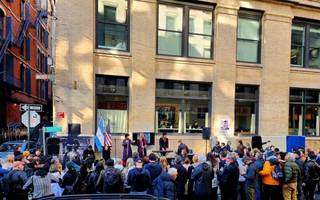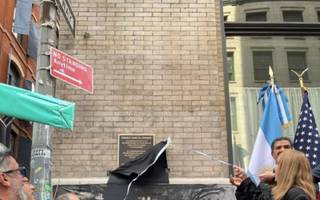 Para finalizar la actividad, se develó una placa recordatoria en la pared donde Charly se tomó la foto de tapa, y el característico cartel verde de las calles de Nueva York con el nombre de “Charly García Corner”.