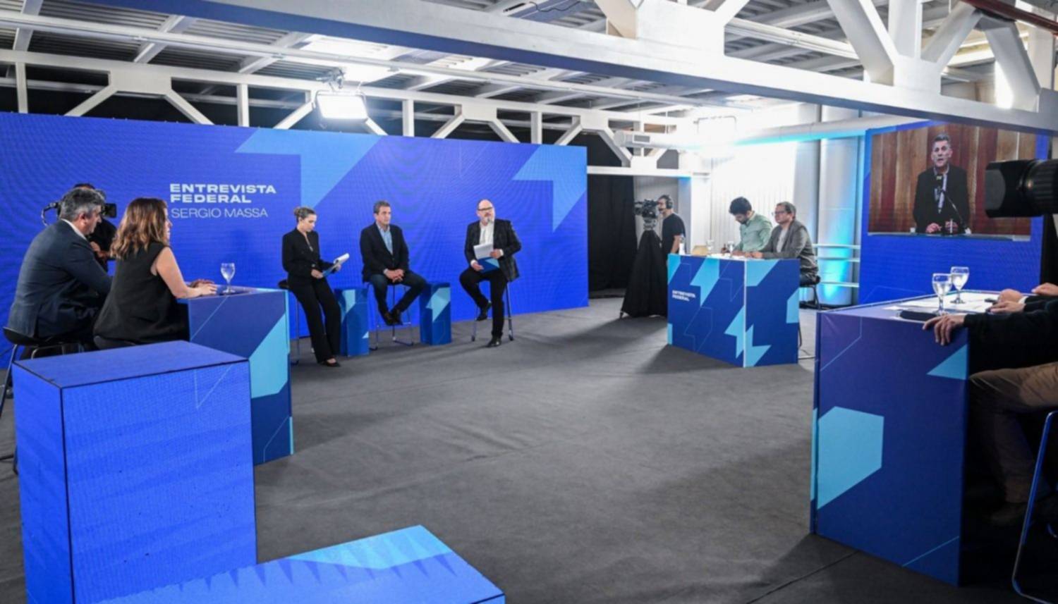 El ministro de Economía y candidato oficialista, Sergio Massa, dio definiciones a medios de 23 provincias sobre federalismo, desarrollo regional, coparticipación, la lucha contra el narcotráfico, pacto federal y simplificación tributaria, el desarrollo de las economías regionales y el impulso de las nuevas oportunidades en materia minera, energética, turística y logística.