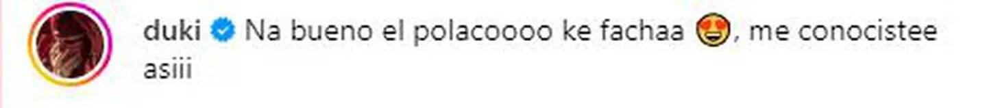Mauro Ezequiel Lombardo Quiroga, más conocido artísticamente como Duki, hizo un comentario al ver el nuevo look de Rodrigo De Paul en su cuenta de Instagram: “Na bueno el polacoooo ke fachaa, me conociste así”.