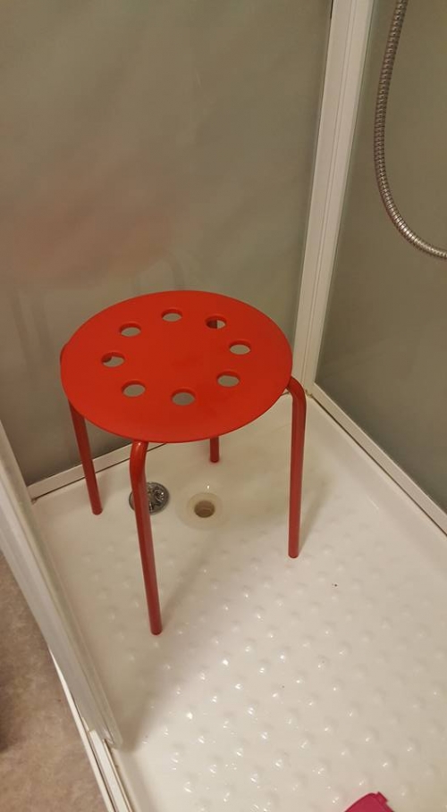 Claus Jørstad es un noruego de 45 años que, por un problema en la rodilla, se tiene que bañar sentado.Para hacerlo se compró un banquito en la popular tienda Ikea. Este banquito para ser más exactos.