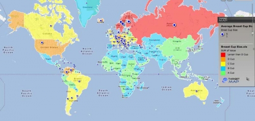 Tiempo de lectura: 1 minuto, 58 segundosNada de mapas físicos ni políticos, un grupo de científicos diseñó uno que revela el talle de corpiño estándar que usan las mujeres según su ubicación geográfica. Te adelantamos que en la próxima Copa Mundial de Fútbol los hombres van a estar más que contentos.