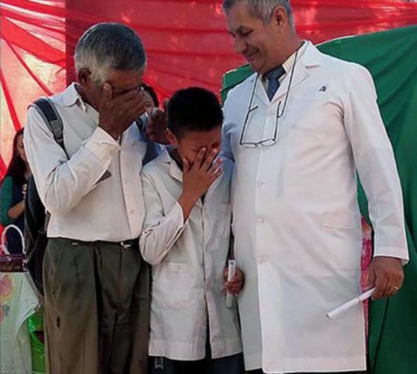 Todo comenzó con un posteo en las redes sociales, donde alguien subió una foto en la que se veía a Efraín llorando junto a su abuelo, Angel Delgado, quien tampoco lograba contener las lágrimas. Ambos estaban de pie junto al director de la escuela, Hugo Baricheval, quien acababa de darle al niño su diploma de honor por haber tenido las mejoras notas del séptimo grado.