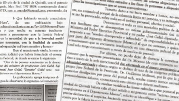El joven José Luis Gelid con el patrocinio de su abogado, José Aranda, hizo una presentación ante el fiscal federal local, Pedro Simón, para ponerse a disposición de la Justicia a los fines de "acreditar" su "inocencia y salvaguardar mi buen nombre y honor". Esto a raíz de las publicaciones de un portal, en la que da cuenta de que el ex juez Miguel Moreno lo habría sindicado como "el máximo distribuidor" de droga de Quimilí, al barajar la hipótesis de que la muerte del menor Marito Salto, en esa ciudad, habría sido un "ajuste de cuentas" vinculado con un familiar de la víctima, y a supuestas maniobras de encubrimiento del crimen. Es tas mani fes taciones que publica un portal, las habría realizado el ex magistrado del Crimen que fue denunciado en el "afer cautelares" (por el cual estuvo detenido), ante el juez federal Claudio Bonadio, en Capital Federal. El magistrado porteño se declaró incompetente y remitió el expediente al Juzgado Federal local (ver nota aparte). En la presentación, José Gelid (h) remarca que decidió presentarse de manera espontánea ante la Justicia Federal para ponerse a "su entera disposición, en la necesidad de que a la brevedad posible se lleven a cabo todas las investigaciones necesarias, con la finalidad de acreditar de manera inmediata mi inocencia y salvaguardar mi buen nombre y honor". La presentación del hijo del diputado provincial y ex intendente de Quimilí, José Gelid, está acompañada con capturas de imágenes del portal, con la "presunta presentación" que habría realizado Moreno ante Bonadio. Asimismo, reproduce párrafos de la supuesta declaración de Miguel Ángel Moreno, en la que se lo menciona: "Otras de las personas mencionadas en la denuncia de Moreno sería el sobrino del ministro de Producción, Luis Gelid, hijo del actual diputado provincial José Gelid, ‘Josecito’ Gelid como máximo comercializador de estupefacientes en el departamento Moreno" En el escrito dejado ante Simón, el joven señala: "Me asombra la liviandad de las manifestaciones, desconozco de su sustento fáctico, legal y jurídico; pero en el absoluto conocimiento de mi inocencia, de mi hombría de bien, desmiento categóricamente las arteras alegaciones vertidas sobre mi persona, y acudo ante estos estrados a los fines de ponerme a disposición de la Justicia, para las investigaciones que se crean convenientes". "Desconozco -señala la presentación por otra parte- si todo es una maniobra política de desprestigio hacia mis familiares que se desempeñan en esferas gubernamentales (mi tío -Luis Gelid- ministro del Poder Ejecutivo Provincial y mi padre -José Gelid- diputado provincial) o si responde a un ‘revoleo desesperado e infundado’ de responsabilidades a terceros ajenos, por parte del supuesto denunciante (Moreno), al que no conozco, y q u i e n es de público conocimiento que se encuentra involucrado en una situación judicial de gravedad (de la cual solo tengo conocimiento a través de medios de prensa". José Luis Gelid agrega: "No puedo dejar de destacar la extrañeza que provoca conocer que la supuesta presentación del Dr. Moreno (de cuya existencia no tengo certeza sino a través de la web mencionada) fue efectuada en el marco protectorio del testigo de identidad reservada y abarca –según se deduce de una de las imágenes publicadas- hasta el propio juez Federal de la Provincia, Dr. Guillermo Molinari, por lo que la publicidad y posterior divulgación por parte del portal web, resulta cuanto menos contradictoria, sino potencialmente delictiva, circunstancia esta última que deberá analizarse". Peticiones En el tramo final del escrito presentado ante la Fiscalía Federal, José Luis Gelid y su abogado plantean: "De resultar verídicas las líneas referidas a que personal policial de la ciudad de Quimilí habría sido el que señaló a mi persona como ‘máximo comercializador de estupefacientes del departamento Moreno’, solicito que se identifique a los mismos y se los cite a prestar declaración al respecto, haciendo reserva de iniciar las pertinentes denuncias en su contra por la falacia incurrida". El joven también hace una manifestación del uso de esta denuncia en su contra. "Lo cierto es que desgraciadamente se ha caído en una utilización, manipulación artera de un horrendo crimen (el de ‘Marito Salto’), del cual todos los que vivimos en Quimilí, reclamamos e imploramos justicia, por su familia, por su eterno descanso y por la paz social de la pequeña comunidad". Para finalizar, José Luis Gelid y su patrocinante legal, solicitaron al fiscal que se "investigue la posible comisión de delitos en contra de autores a establecer, por la violación del régimen de ‘protección de testigos de identidad reservada’ que supuestamente habría requerido el Dr. Moreno". También, que se le exhiba "los supuestos elementos incriminantes de mi persona" para analizar los mismos y ejercer "mi derecho de defensa, y oportunamente, llevar adelante las acciones judiciales que correspondan", concluye la presentación.
