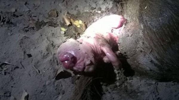 Estos vieron atónitos que el animal nació con una cabeza de gran tamaño, similar a la de un humano.