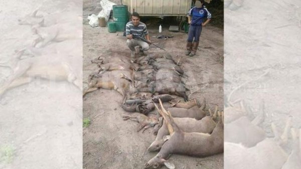 Tiempo de lectura: 36 segundosLa imagen circula en las redes sociales y sería de hace diez días de acuerdo a lo que se supo. En la foto, se observan al menos una docena y media de animales autóctonos muertos.