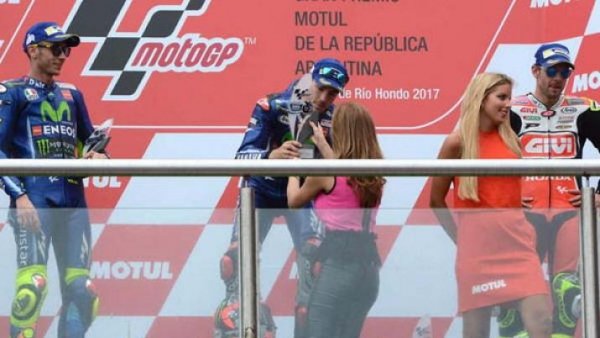 Por último, cuando terminó la carrera, la Dra. Claudia de Zamora fue la encargada de entregar el premio al ganador, Maverick Viñales.
