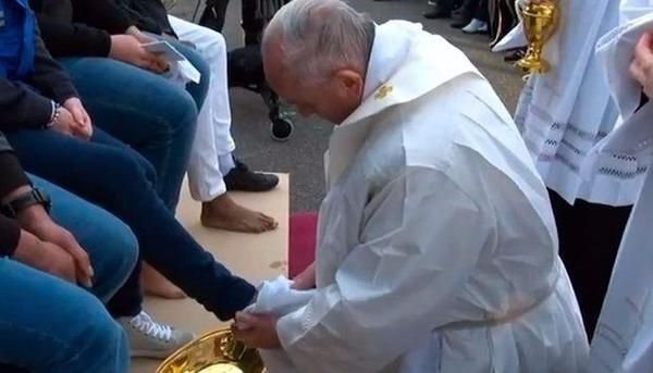 El papa Francisco lavará hoy los pies de 12 detenidos, entre ellos un argentino, al celebrar con una visita "estrictamente privada" a una prisión de las afueras de Roma la denominada misa de la Cena del Señor.