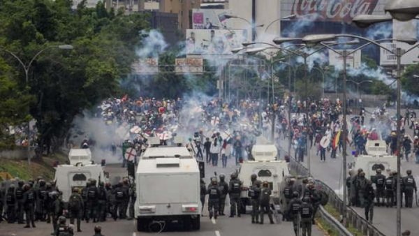 Miles de manifestantes marchaban pacíficamente por una gran avenida del este de la ciudad, pero al llegar a la autopista Francisco Fajardo, la principal arteria vial de la capital, fueron dispersados por la Policía Nacional y la GNB con bombas lacrimógenas, chorros de agua e incluso piedras, reportó la agencia de noticias Ansa.