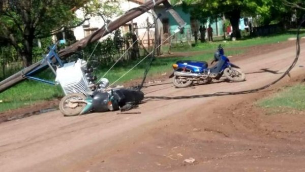A las 11.30, de ayer martes, en calle Lavalle al 1300, por causas que aún no están claras, se produjo accidente resultando lesionado un hombre de 35 años, domiciliado en el Barrio Elias, que iba en su motocicleta, cuando un poste de madera de la empresa de energía cayó sobre él.