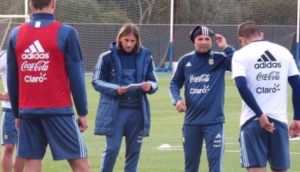 Sampaoli no hizo una práctica de fútbol y el plantel se entrenó en dos grupos: por un lado defensores y volantes defensivos y por el otro los volantes ofensivos y delanteros. Pero ya apareció el posible once: Sergio Romero; Gabriel Mercado, Emanuel Mammana, Nicolás Otamendi; Eduardo Salvio, Lucas Biglia, Ever Banega, Angel Di María; Lionel Messi y Paulo Dybala; Gonzalo Higuain.