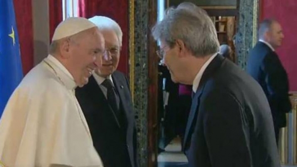 "Vivimos, sin embargo, un momento en el que Italia y Europa en su conjunto están llamadas a afrontar problemas y riesgos de diversa naturaleza, como el terrorismo internacional, que se alimenta del fundamentalismo", planteó luego Jorge Bergoglio, que llegó a la sede del gobierno italiano en su tradicional Ford Focus apenas escoltado por algunas motos de policía.
