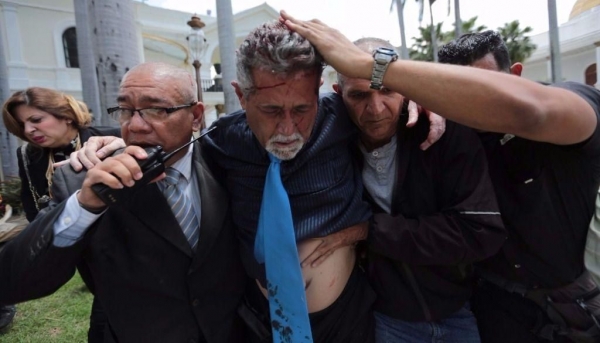 Al menos tres diputados opositores fueron heridos en la cabeza por seguidores del presidente Nicolás Maduro que irrumpieron violentamente ayermiercoles en la sede del Parlamento venezolano, de mayoría opositora, donde se realizaba una sesión especial por el día de la independencia, informaron legisladores.
