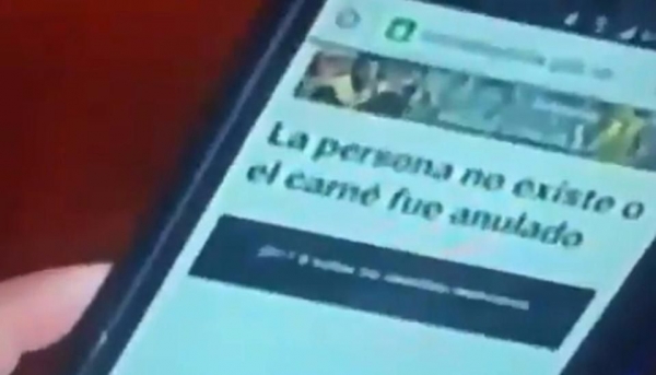 Captado por una cámara, se ve el instante en que tras pasar por el scanner en la pantalla del dispositivo lector aparece la frase: “La persona no existe o el carné fue anulado”. A continuación, todos los que están en la mira de las lentes, el presidente, su esposa Celia, la controladora del carnet, hacen como si nada y continúan con la actuación pese al caluroso momento que acaban de vivir.