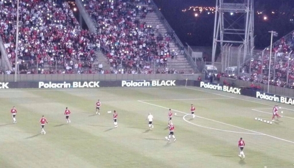 Cada jugada, cada lujo, cada gol generó la excitación de los hinchas presentes en el estadio Martearena. Camisetas rojas y blancas y mucho fervor ante cada pase completaron la escena en la noche salteña.