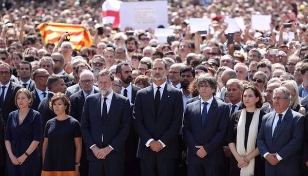 En el lugar estaban los principales políticos catalanes, incluido el presidente regional Carles Puigdemont, además del rey Felipe VI, el presidente del Gobierno Mariano Rajoy, la vicepresidenta y el ministro del Interior. También los líderes de la oposición, Pedro Sánchez, Albert Rivera y Pablo Iglesias.
