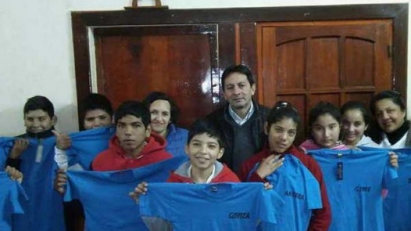 CAMPO GALLO, Alberdi (C) Alumnos primarios de Campo Gallo recibieron remeras otorgadas por el municipio de esta ciudad. El intendente de la capital del departamento Alberdi, Francisco Alanis, recibió en su despacho a docentes y alumnos que asisten a 7º grado de las escuelas 1223, 913 y 703 y les hizo entrega de esta indumentaria que se viene realizando año a año, como un aporte e incentivo para que los niños sigan estudiando.
