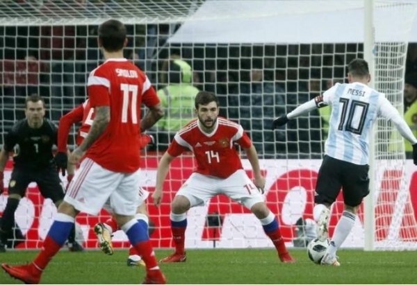 La primera llegó tras una habilitación del capitán a Ángel Di María, que sacó un remate cruzado que Akinfeev despejó con la pierna izquierda. En el rebote, Sergio Agüero no pudo empujarla.