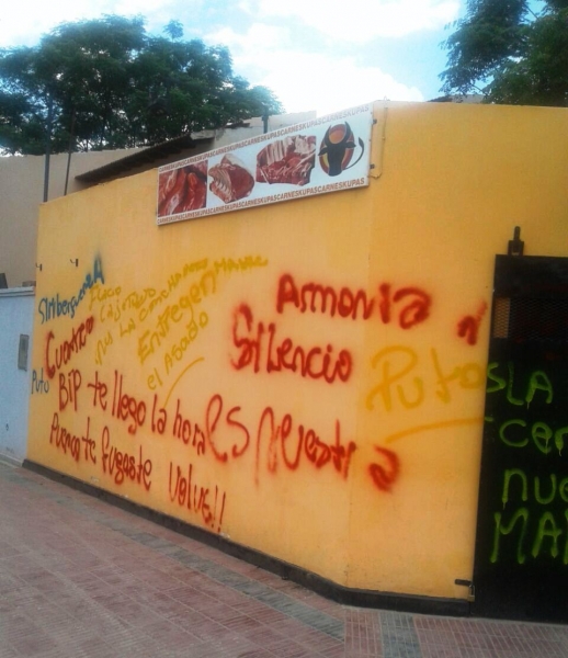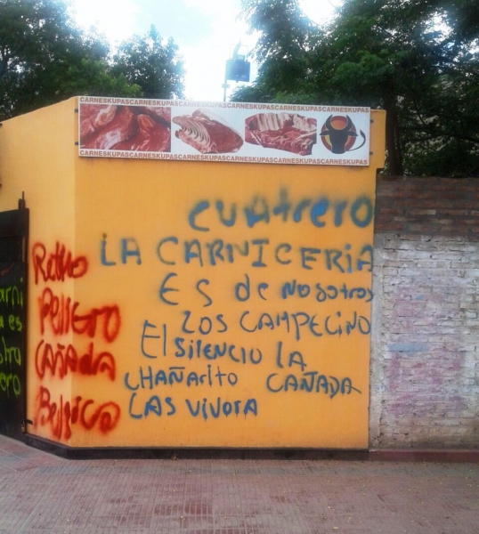 “Cuatrero, la carnicería es de nosotros, los campesinos”, fue una de las frases que escribieron en las paredes del local donde venderían la carne de las vacas robadas"