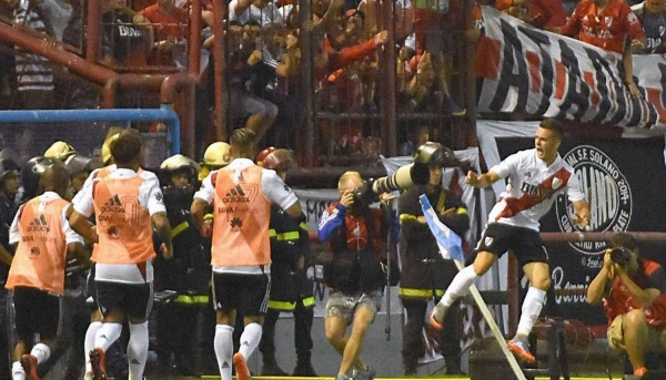 Borré peleó una pelota que parecía perdida con sus marcadores cerca del área rival, anticipó el flojo cierre de Goltz, tocó a Scocco, este devolvió la pared y el colombiano colocó el balón junto a un palo, de zurda, ante una tibia respuesta del arquero Agustín Rossi.