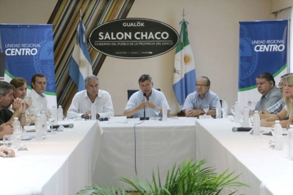 En Sáenz Peña, el mandatario también encabezó una reunión de gabinete junto a los intendentes de las tres comunas, y dio a conocer que de las tres localidades, la más perjudicada es Sáez Peña, estimando que un 30 por ciento de su superficie está bajo agua.