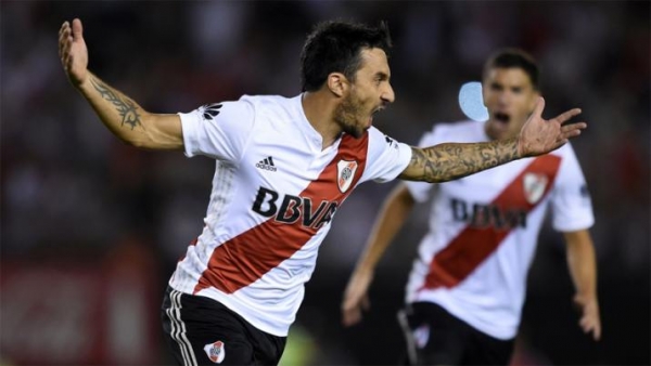 River, allá de sus dudas, mantuvo la intensidad, fijó su mirada en el arco rival y alcanzó la apertura del marcador (sin importar los merecimientos) con un soberbio tiro libre de Scocco (avisó en el primer tiempo), a los 11 minutos.