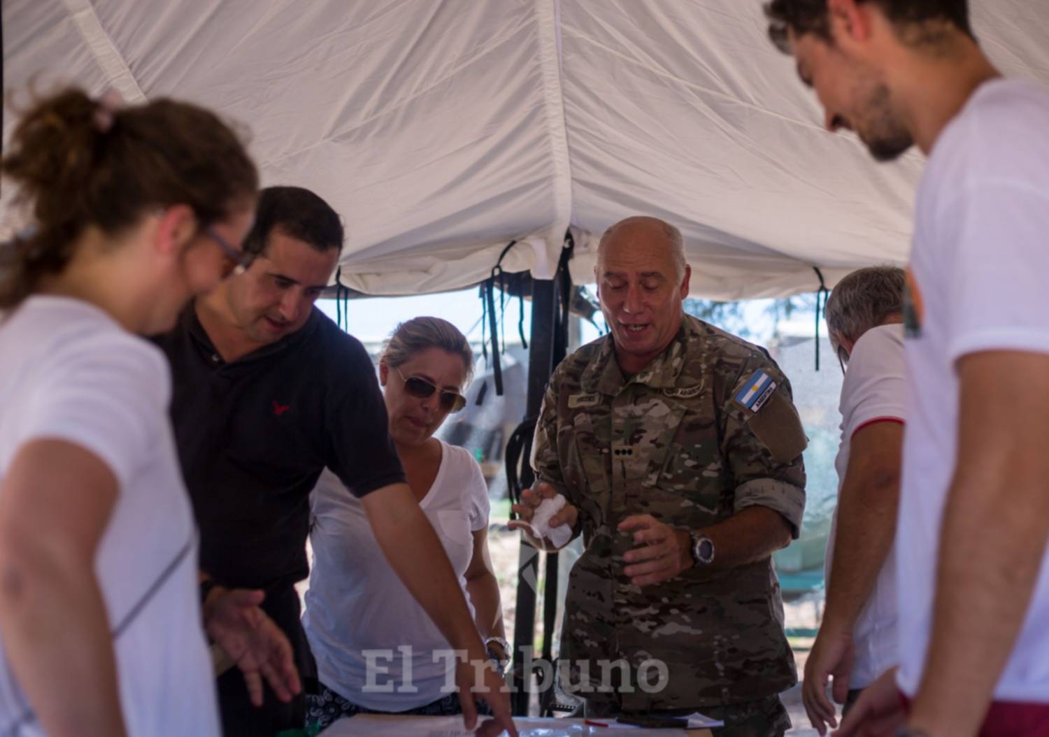 Durante la mañana de ayer, se realizó una reunión del Centro de Operaciones de Emergencia en una de las carpas del campamento del Ejército El Rosado. Estuvieron reunidos representantes de organismos nacionales como el Ministerio de Seguridad, de la Subsecretaría de Protección Civil, de Vialidad y también funcionarios provinciales. A la reunión, la encabezó el comandante del Ejército. Allí se anunció la decisión de que se utilizará el camión/puente Bailey pero no el del Ejército, sino el de Vialidad Nacional.