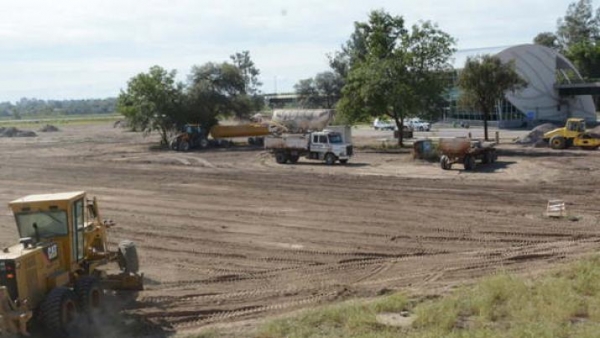 Un fenomenal despliegue de máquinas se puede apreciar a la vera del río Dulce, entre el Jardín Botánico y el puente carretero. La UTE Astori y Mijovi fue la que se quedó con la adjudicación de la obra que actualmente se encuentra en su primera etapa, que es la de la nivelación y emparejamiento del terreno donde será levantado, informaron fuentes del Ministerio de Obras Públicas.