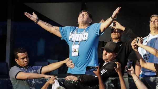 Durante el duelo frente a Nigeria, Diego se mostró muy efusivo y atento a las jugadas de la Selección. Sin embargo, al final del enfrentamiento se lo vio acompañado por sus guardaespaldas porque había perdido estabilidad y balbuceaba.