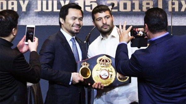 Enfrente tendrá a una absoluta celebridad de las últimas dos décadas del boxeo. El filipino está próximo a cumplir 40 años y afrontará el 69° combate de su exitosa trayectoria. Sus estadísticas marcan 59 ganadas (38 nocaut), 7 perdidas y 2 empatadas.