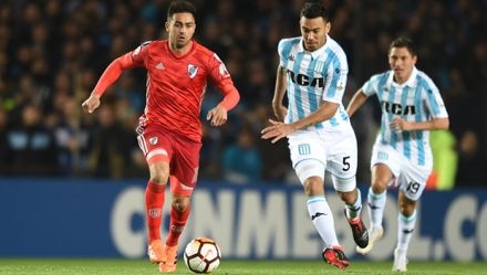 En una de las más claras para el Millonario, el Pity desbordó por izquierda y encontró a Scocco: el delantero no logró acomodar bien el pie y desperdició una buena chance. La siguiente fue de Javier Pinola, a la salida de un tiro de esquina, pero su remate de derecha se fue muy cerca del palo derecho de Arias. Racing tuvo la última del primer tiempo con un derechazo de Gustavo Bou que Armani rechazó de manera brillante.