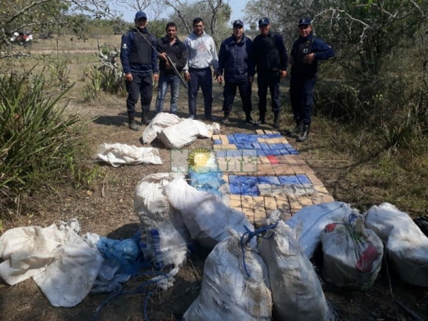De tal manera que, con esa evidencia volvieron a rastrillar el campo y tras el seguimiento de rastros por un poco más de tres kilómetros monte adentro, hallaron varias bolsas de polipropileno a escasos metros de la ruta en las cuales contenían alrededor de 412 formatos rectangulares embalados con una sustancia vegetal positivo a cannabis sativa con un peso de 329 kilos 932 gramos.