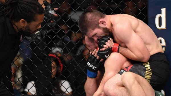 El segundo asalto tuvo un comienzo brutal, con Nurmagomedov impactando el rostro de Conor, haciéndolo tambalear, y con un intercambio de golpes muy interesante. Pero luego, Khabib volvió a apostar por llevar la pelea al suelo y machar salvajemente a un irlandés que terminó con un corte importante en su ojo izquierdo. Todo indicaba que el campeón ruso iba camino a defender su corona.