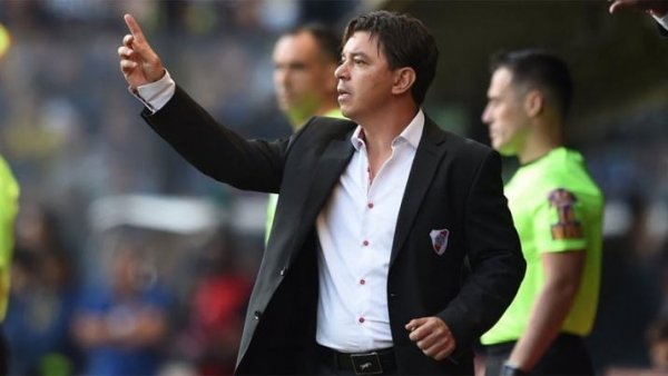 El técnico estaba sancionado por la Conmebol porque el equipo había salido tarde al segundo tiempo en la ida ante Gremio en el Monumental, por lo que no podía mantener ningún tipo de vínculo con los futbolistas, lo que lo obligó a observar el cotejo en un palco del estadio.
