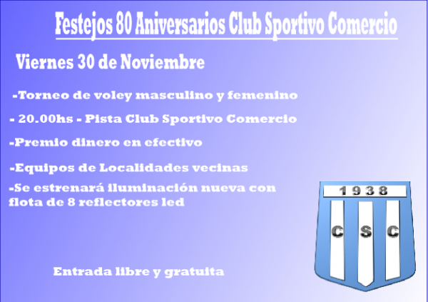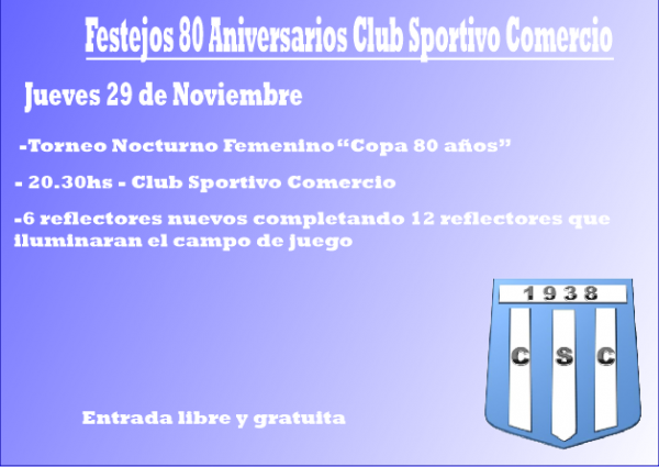 Algo de lo que serán los festejos del Club Sportivo Comercio de esta semana.