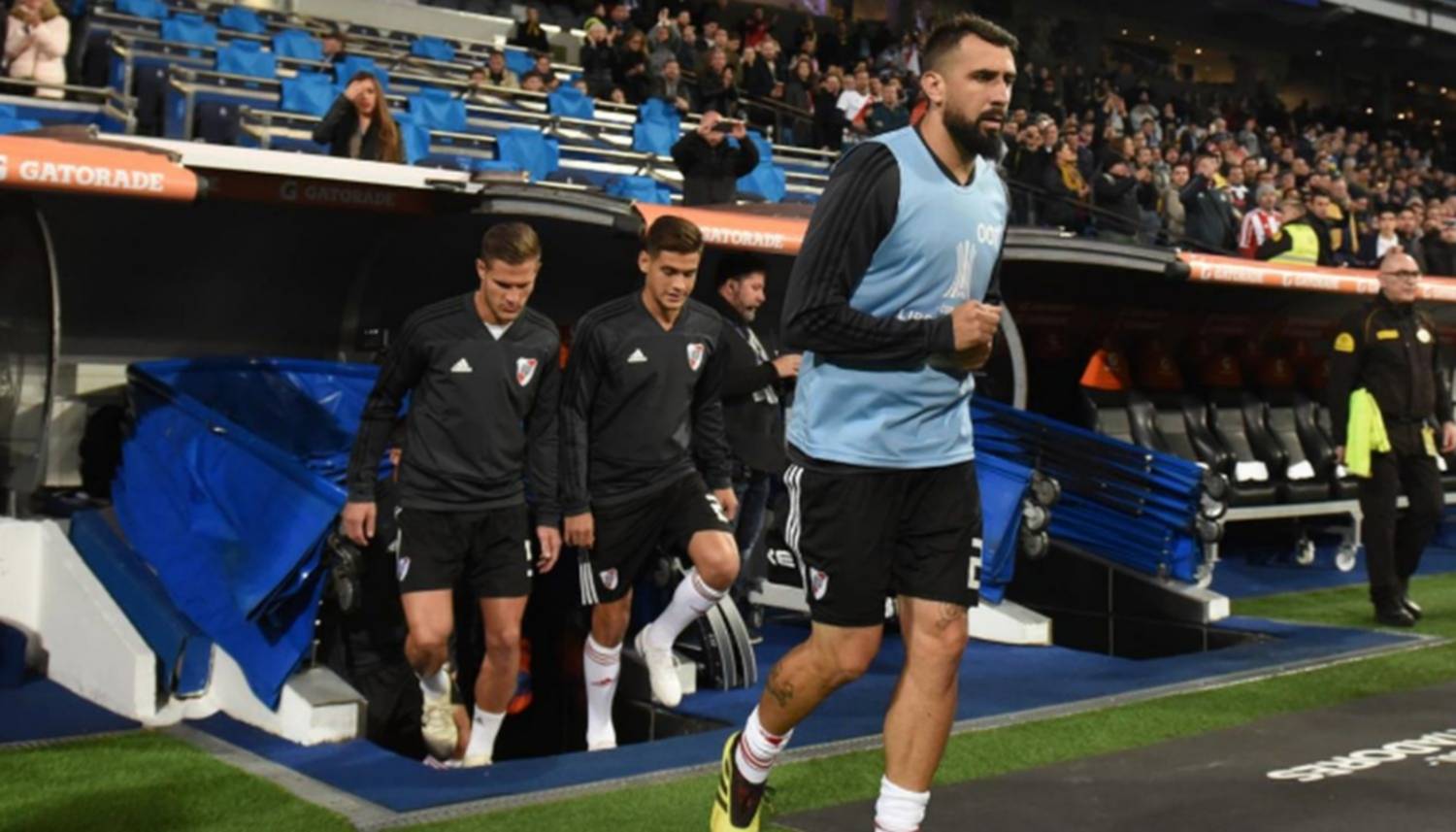 River: Franco Armani; Gonzalo Montiel, Jonatan Maidana, Javier Pinola, Milton Casco; Enzo Pérez, Leonardo Ponzio; Ignacio Fernández, Exequiel Palacios, gonzalo Martínez y Pratto. DT: Marcelo Gallardo.