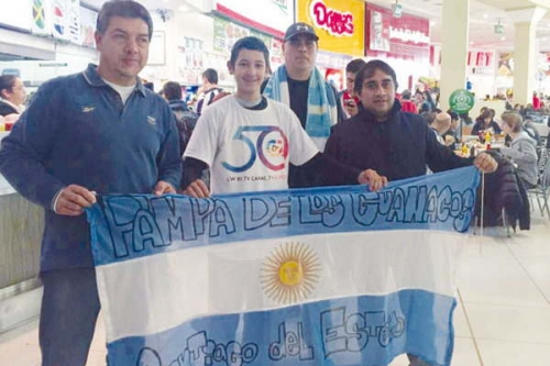 Desde la "Madre de Ciudades" y desde la lejana Pampa de los Guanacos aparecieron los primeros santiagueños en La Serena. Lo hicieron ayer en el estadio La Portada para ver el partido que disputaron las selecciones de la Argentina y la de Paraguay. Claudio Tombolatto vino acompañado por su familia conformada por Silvia Leguizamón y los hijos Donato y Santino Tombolatto. Claudio y Silvia contaron a EL LIBERAL que la presencia de ellos en La Serena tiene un motivo especial: es el regalo de cumpleaños que le hicieron a Santino, quien ayer celebró sus diez años de edad. Al momento en la familia Tombolatto conversaba con EL LIBERAL, a las 16.30, pasó lentamente el colectivo que trasladaba a los jugadores de la Argentina. "¡Mirá Santino, ahí va Messi!", exclamó Silvia. "Si, alcancé a verlo", respondió el niño. Roberto González, Santiago, Diego y Cholo también arribaron a la ciudad turística chilena para vivir y sentir al seleccionado que dirige técnicamente el "Tata" Martino. Desde ayer, el equipo que tiene al mejor jugador del mundo puso primera en la Copa América Chile 2015. Así como vienen miles de argentinos vienen desde remotos lugares de nuestro país, también lo hacen los habitantes de Santiago del Estero. Es el caso de una familia de Pampa de los Guanacos que, con enorme esfuerzo, se llegó a La Serena para acompañar a las celebridades del fútbol en el mundo que hoy están juntos en la selección argentina. Publicado el 14/06/2015