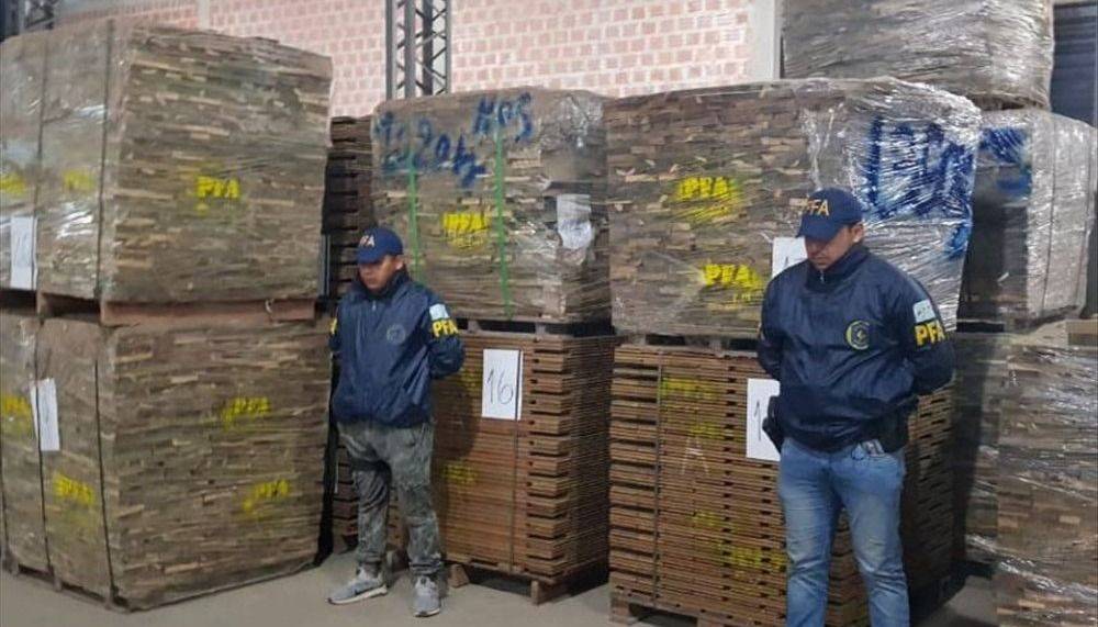 Un embarque de parquet de palo santo incautado por la Policía Federal.