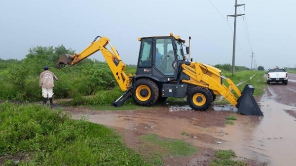 La máquina retroexcavadora con pala frontal, otorgada por el gobierno provincial, fue vital para la ampliación de un canal de drenaje para favorecer el escurrimiento del agua.