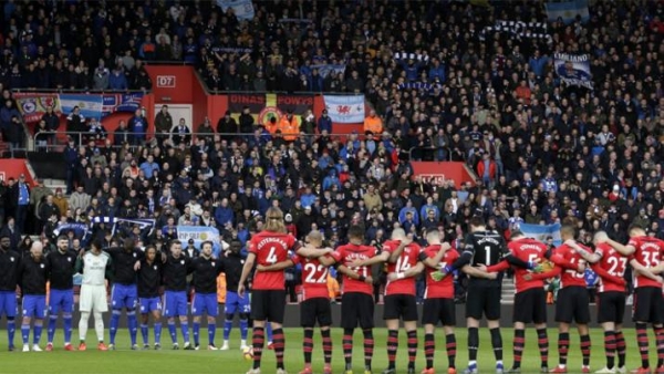 El Southampton y el Cardiff City guardaron un minuto de silencio antes del comienzo del encuentro y lucieron un brazalete negro en el partido que jugaron hoy por la fecha 26 de la Premier League.
