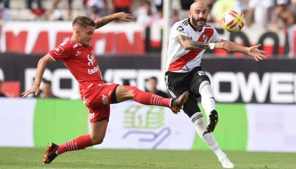 El colombiano Juan Fernando Quintero, a los 31 minutos del primer tiempo, y Matías Suárez, a los 38 del segundo, marcaron los goles del conjunto "millonario", mientras que Ramiro Costa, a los 44 del complemento, descontó para la visita.