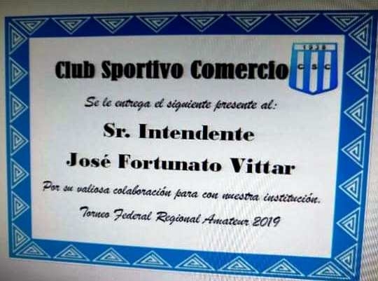 En esta oportunidad le entregaron al Intendente un reconocimiento por las tareas y el apoyo realizado al Club.