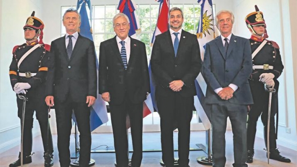 Los presidentes de Argentina, Chile, Paraguay y Uruguay, Mauricio Macri, Sebastián Piñera, Mario Abdo Benítez y Tabaré Vázquez, respectivamente, acordaron ayer promover el relanzamiento de la candidatura conjunta de los cuatro países para organizar el Mundial de Fútbol de 2030.