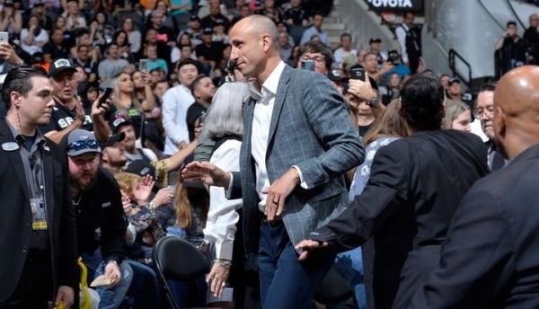 El homenaje fue un acto que tuvo como excusa el partido que los Spurs jugaron contra los Cleveland Cavaliers, pero que se vistió de "celeste y blanco" desde antes y hasta después de esos 48 minutos que tuvieron un encuentro en que los de San Antonio extrañaron mucho a "Manu", tanto como sus aficionados.