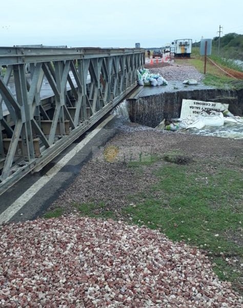Desde las 10 de este lunes, se procedió al corte del transito, por orden de Tulio Altamirano, de la Dirección de Vialidad Nacional que dispuso se proceda al corte total debido al cúmulo de agua que supera el puente Bailey poniendo en peligro la integridad física de los que transitan por este sector, indicándose ademas que existe serio peligro de socavamiento de la estructura de tierra y ripio del puente.