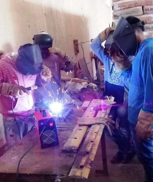 Hoy se realizó la segunda clase con un docente universitario de la Escuela de Artes y Oficios de la UNSE sobre soldadura y herrería en el Corralón Municipal.
