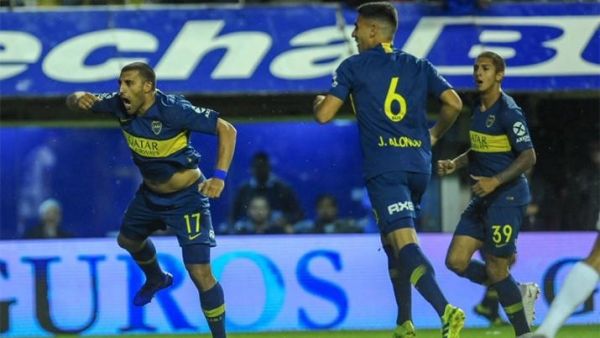 En su primera chance de peligro, Boca abrió el partido con una definición de Ábila, tras un desvío de Almendra en el primer palo en un córner ejecutado desde la derecha.