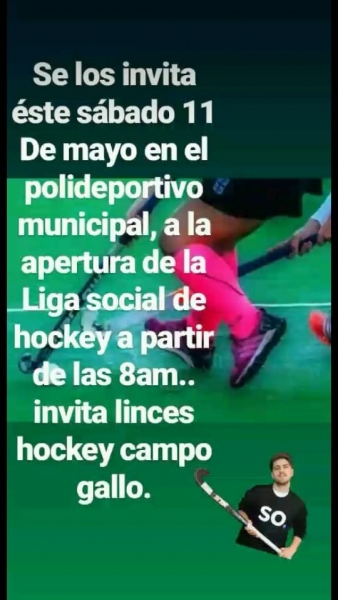 Tiempo de lectura: 21 segundosHoy Sábado 11 de mayo, Gran Apertura de la Liga Social de Hockey a partir de las 08.00 hs en el establecimiento del Polideportivo Municipal.
