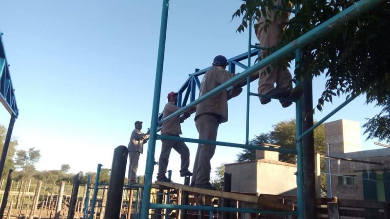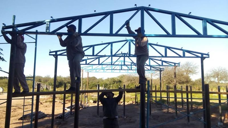 Los trabajos de los dos nuevos corrales de 7,00 metros x 7,00 metros,se realizan de acuerdo a especificaciones de Senasa y Procarne, con estructuras de caños metálicos, muros perimetrales de mampostería, piso de hormigón armado con el drenaje adecuado, iluminación eléctrica, techados con instalación de pararayos.