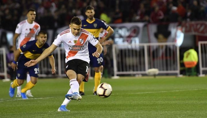 Tiempo de lectura: 1 minuto, 39 segundosRiver Plate venció a Boca Juniors por 2 a 0 en el partido de ida de las semifinales de la Copa Libertadores jugado en el estadio Monumental, con goles de Rafael Santos Borré, de tiro penal, a los 7 minutos del primer tiempo e Ignacio Fernández a los 24 del segundo.