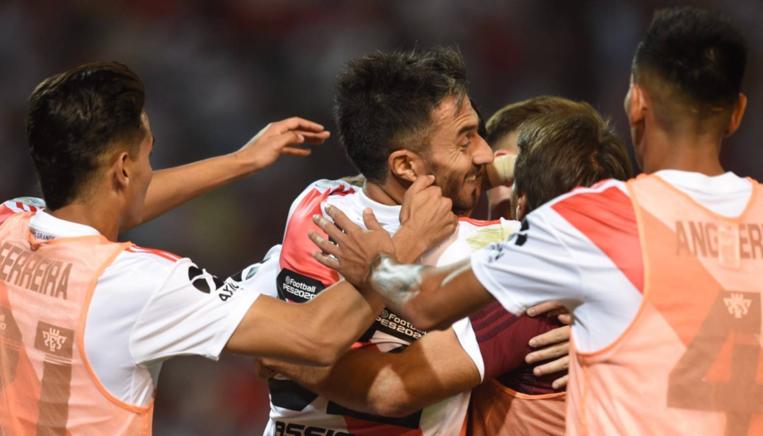 Ambos le dieron buen trato al balón y generaron algunas situaciones: un pase filtrado de Fernández a Rafael Borré, que se quedo sin ángulo; una respuesta desde afuera de Núñez que exigió a Franco Armani; y un remate de Scocco que tapó Diego Rodríguez y tras el rebote Palacios la tiró sobre el travesaño.
